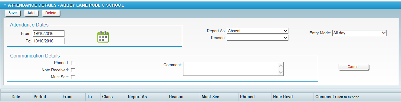 In TWebSchlAdmin 5.40.10 and newer, a new calendar replaces the original calendar throughout TWebSchAdmin. When you click the Calendar icon (green icon in first screen shot below), the resulting pop-up has two picklists: One for Month and One for Year; as in Oct. 2016 in the second screen shot below. This makes it much easier for you to select dates.