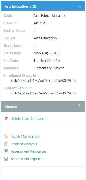 To remove all attached information to the Class Section in order to re-initialize, Click Delete Class Content.