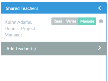 Click Add Teachers to add more shares. You may select one or multiple Teachers, then select the level of permission from Read, Write, Manage.