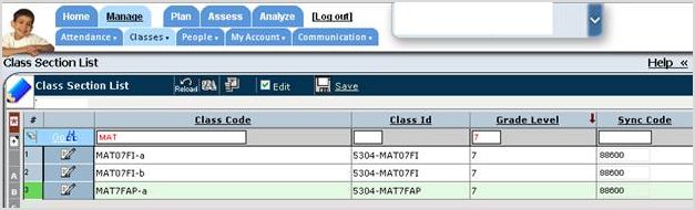 For example: MAT7FAP-A’s Sync Code is 449800, we edit the class section to use the other 2 classes’ sync code of 88600.