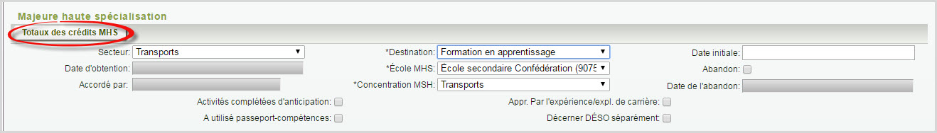 - Cochez la case Abandonné si l'élève ne complète pas le secteur MHS.