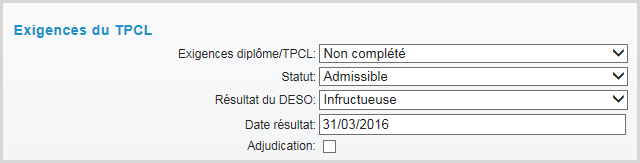 Si la case Processus décisionnel est cochée, la valeur Réussi en français ou Successfully Completed in English sera attribuée au champ Ex. diplôme comp. ling., selon la langue du conseil.