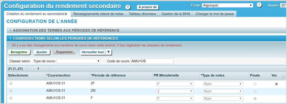 Une fois qu'un cours est terminé, ou qu'il a été retiré de l'emploi du temps de l'élève, il est important de régénérer les dossiers de rendement pour cet élève.