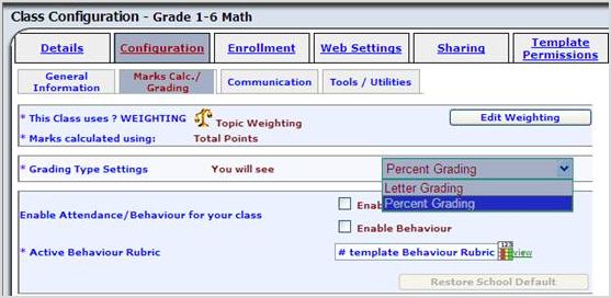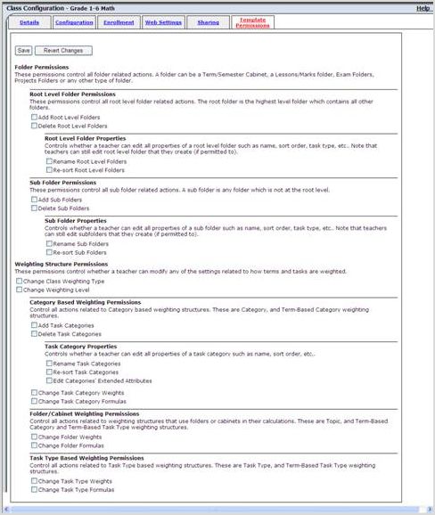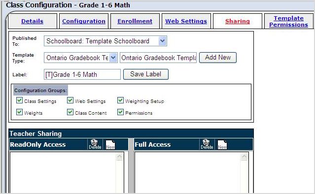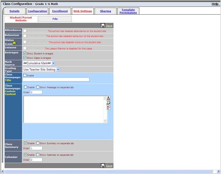 The Web Settingstab is for the Parent/Student Portal. It's important you review and configure each section, depending on what your board would like to share with parents and students. If you configure each template class the same, once you push the template class to your teachers, all the teachers will have the same configuration without them having to configure each class individually. This will save them time.