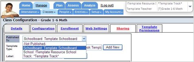 Once you’ve created a new template, you need to publish/share the template with the schoolboard to allow it to be pushed to teachers’ class sections.