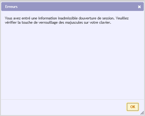 Remarque : Après « n » tentatives infructueuses pour accéder au système durant une session donnée, le compte sera automatiquement suspendu (bloqué durant un certain temps). Le nombre de tentatives et la durée de la suspension peuvent être modifiés.
