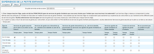 - Vous n'avez pas à fournir une réponse à chaque question ou catégorie d'âge pour chaque question. Si vous ne répondez pas à certaines questions, vous pourrez tout de même enregistrer les autres réponses.