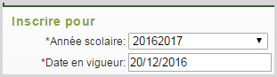 Sélectionnez l'Année scolaire dans laquelle inscrire l'élève. Par défaut, ce champ contient l'année scolaire courante.