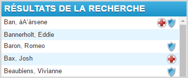 - La croix rouge indique les élèves qui ont des problèmes médicaux si importants que la case à cocher Danger médical a été cochée.
