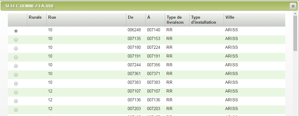 - Si le code postal est invalide, vous verrez ce message d'erreur : Aucune rue n'a été trouvée en fonction de ce code postal.